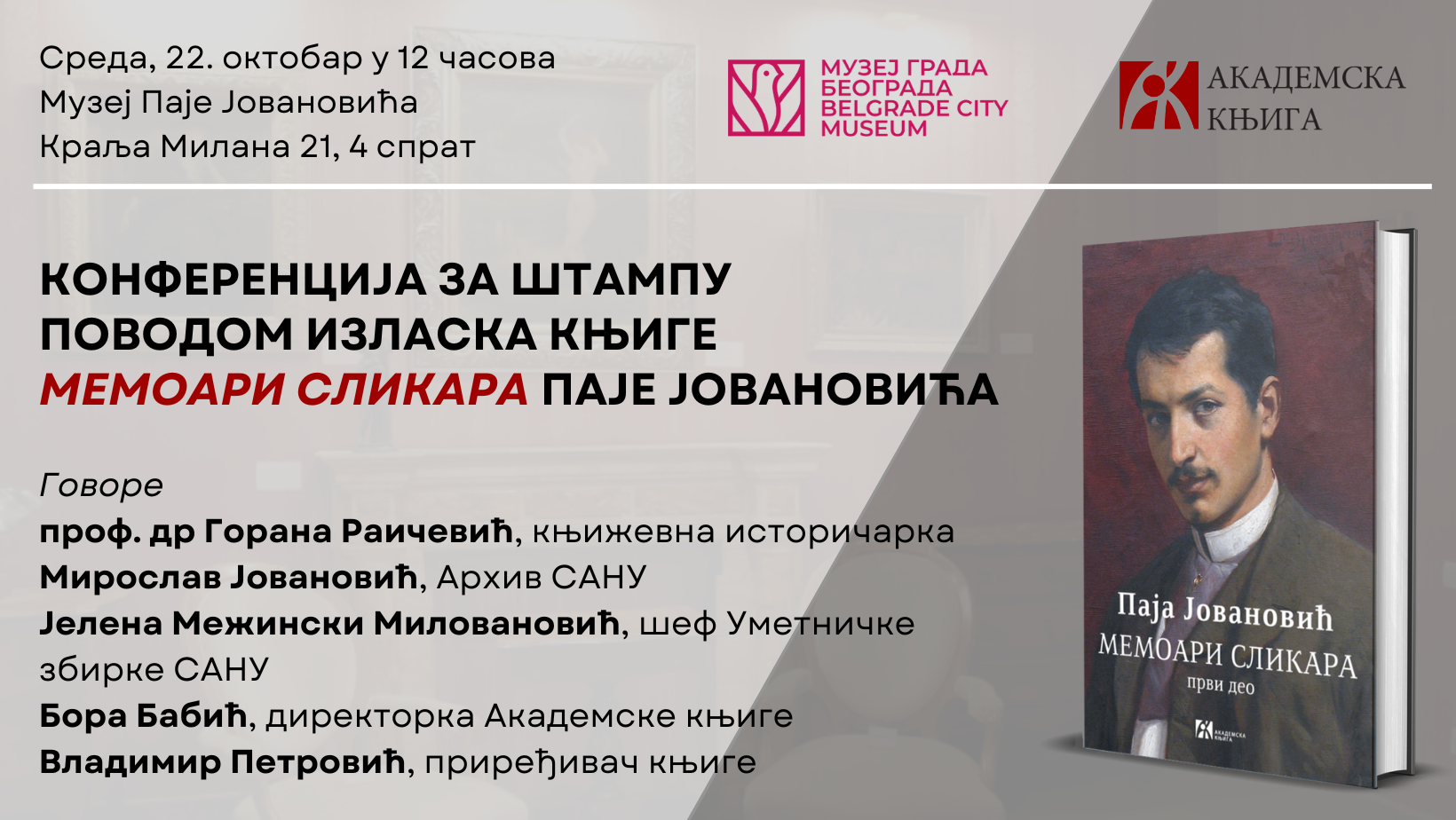 Konferencija za štampu povodom izlaska knjige „Memoari slikara“ 22. oktobra u Beogradu